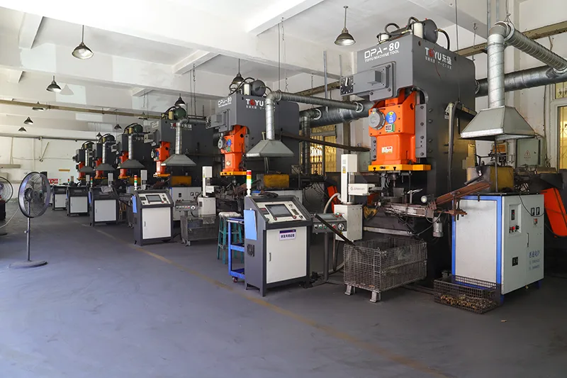 Specialiserede trimmepresser (3 enheder) og en højtemperatur-tempereringsovn (1 enhed) til præcis efterbehandling og afspænding.